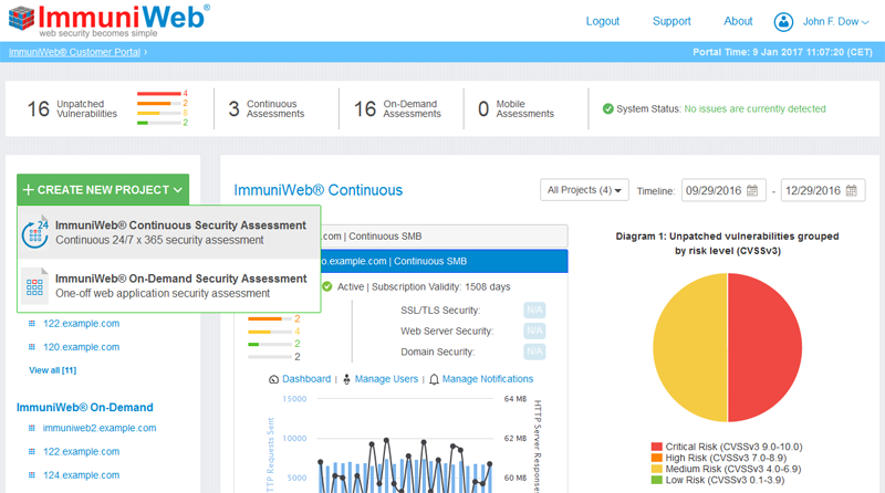 1) Login to ImmuniWeb Customer Portal and create new On-Demand or Continuous assessment project: