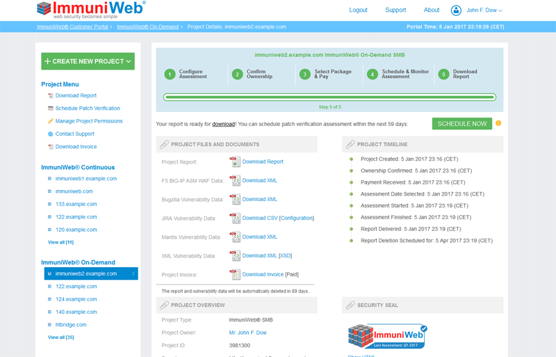 3.1 For ImmuniWeb On-Demand projects, once the assessment is finished, you can download an XML file with detected vulnerabilities in F5 format as displayed on the screenshot below: