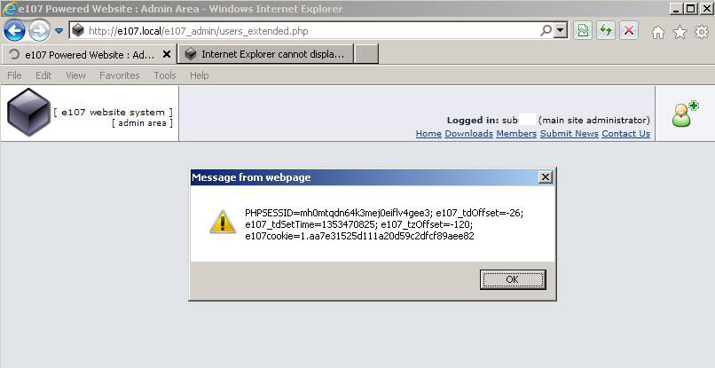 We will demonstrate cross-site request forgery attack against a popular content management system e107. Security advisory HTB23004 (Cross-site Request Forgery in e107) describes a case where software does not validate user input in the "user_include" HTTP POST parameter, this means that we can inject and execute arbitrary HTML and script code in administrator's browser: